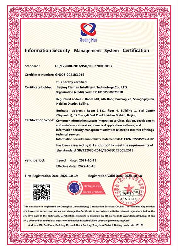 ![]() 信息安全管理體系認(rèn)證證書(shū) |
