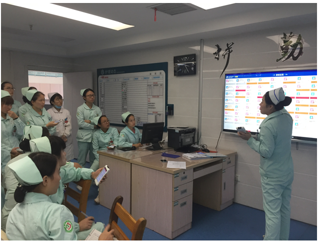 護(hù)理交互大屏通過對臨床護(hù)理信息和醫(yī)療物聯(lián)設(shè)備信息的抓取、整合、分析、重組,實(shí)現(xiàn)信息可視化顯示并搭建人機(jī)交互的平臺。該平臺不僅能從傳統(tǒng)的HIS工作站和移動護(hù)士工作站中抓取臨床護(hù)理信息,還可以將臨床護(hù)理信息進(jìn)行解析、分類、結(jié)構(gòu)化顯示。交互大屏集成了臨床護(hù)理中頻繁使用的信息模塊,如患者電子概覽板、排班總覽、值班報告、工作任務(wù)、健康宣教等功能。