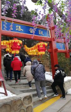 第二天早上9:00點(diǎn),我們團(tuán)體到達(dá)紅螺寺景區(qū),位于北京市懷柔區(qū)城北5公里的紅螺山南麓,距北京市區(qū)55公里,景區(qū)總面積800公頃,國家AAAA級(jí)旅游區(qū)。始建于東晉咸康四年(公元338)年,原名“大明寺”(明正統(tǒng)年間易名“護(hù)國資福禪寺”,因紅螺仙女的美妙的傳說,俗稱“紅螺寺”)。紅螺寺坐北朝南,依山勢(shì)而建,布局嚴(yán)謹(jǐn),氣勢(shì)雄偉?,F(xiàn)在時(shí)節(jié)三九,北方冰天雪地,此時(shí)攀登由緩緩的山勢(shì)而上,身體慢慢散發(fā)熱量,爬到山頂已經(jīng)是大汗淋漓,站在頂端俯視村莊,遠(yuǎn)眺雁西湖畔、懷柔水庫,高矮錯(cuò)落的房子......心境舒爽。