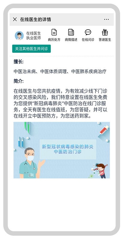 請(qǐng)有需要的市民、患者搜索轄區(qū)所在醫(yī)院的微信公眾號(hào)進(jìn)行在線問診答疑