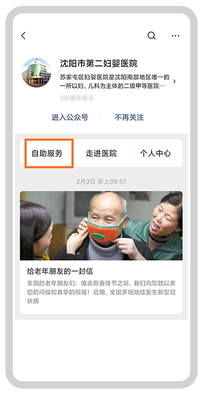 微信公眾號(hào)搜索:沈陽市第二婦嬰醫(yī)院,或掃描醫(yī)院二維碼,關(guān)注公眾號(hào)。