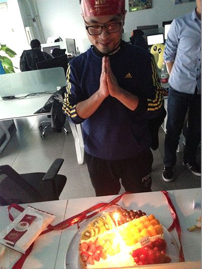 接下來“傳統(tǒng)生日會(huì)”照例為12月份過生日的同事點(diǎn)燃蠟燭(本月為兩位天坦伙伴),唱起祝福的生日歌,分享香甜可口的蛋糕,頒發(fā)“功夫熊貓”,這可是真正的功夫熊貓,在集齊24式功夫熊貓的同事,可以換到房子的鑰匙,這也是“壽星”最大的幸運(yùn),同時(shí)也是為了激勵(lì)天坦人勇往拼搏、直線進(jìn)取設(shè)置的最大獎(jiǎng)項(xiàng)。