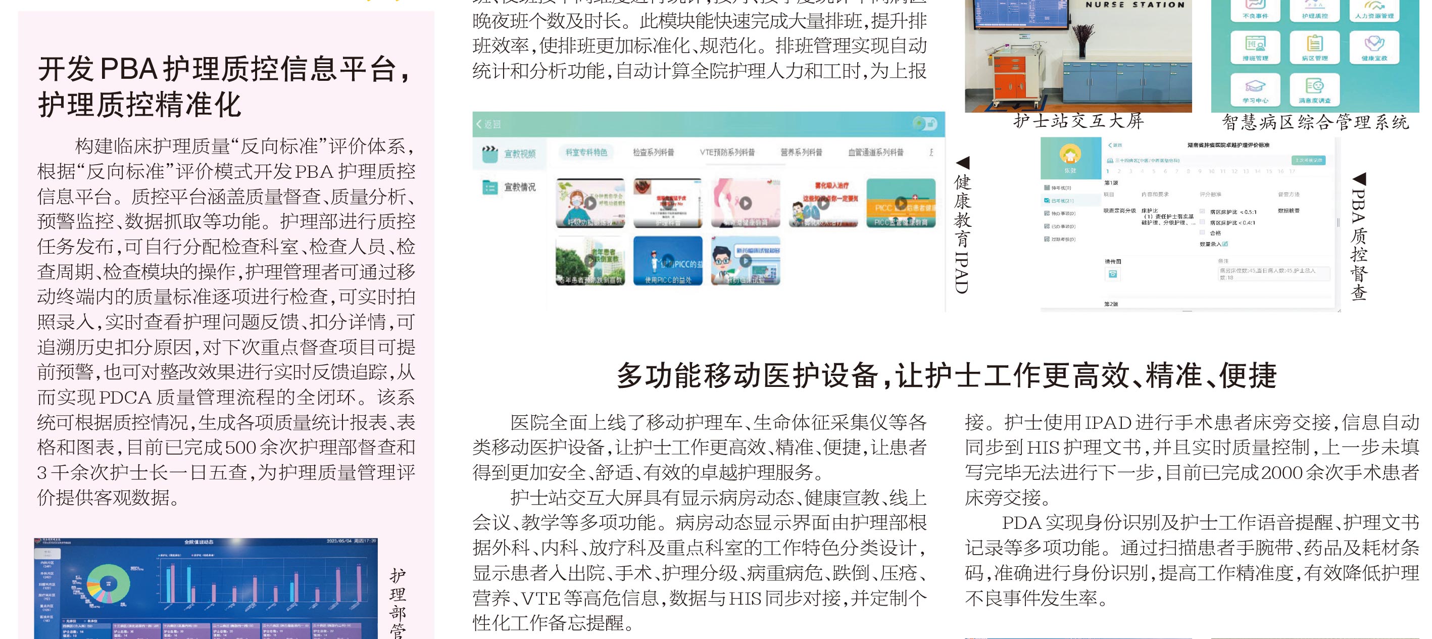 北京天坦智能全面建設湖南省腫瘤醫(yī)院智慧護理,從醫(yī)院頂層設計制定“智慧病房”建設項目,深耕細作開發(fā)出集護理管理和臨床服務為一體的智慧病區(qū)綜合管理平臺,為臨床提供便捷、精準、高效的信息系統(tǒng)支撐,實現(xiàn)護理質(zhì)控精準化、護理管理數(shù)據(jù)化,促進醫(yī)院護理高質(zhì)量發(fā)展。