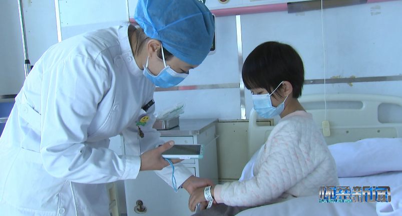 在兒科病房內,前來換藥的護士打開床旁照護系統(tǒng),為小患者挑選喜歡的動畫片,在確認患者身份后用手持PDA掃描患者腕帶上的二維碼,識別病例等信息并登記換藥情況。有了床旁照護系統(tǒng)的動畫轉移注意力,小患者不在緊張、害怕,整個換藥過程十分平穩(wěn)、迅速。